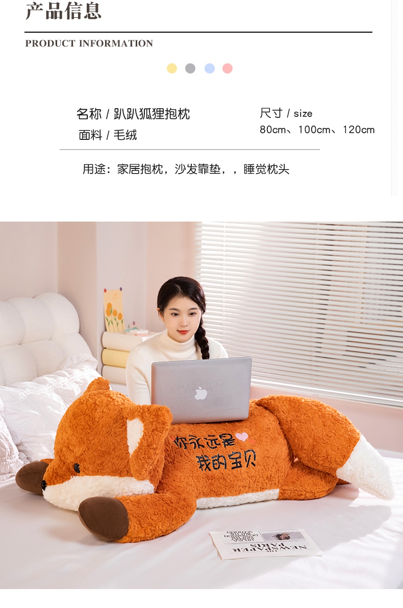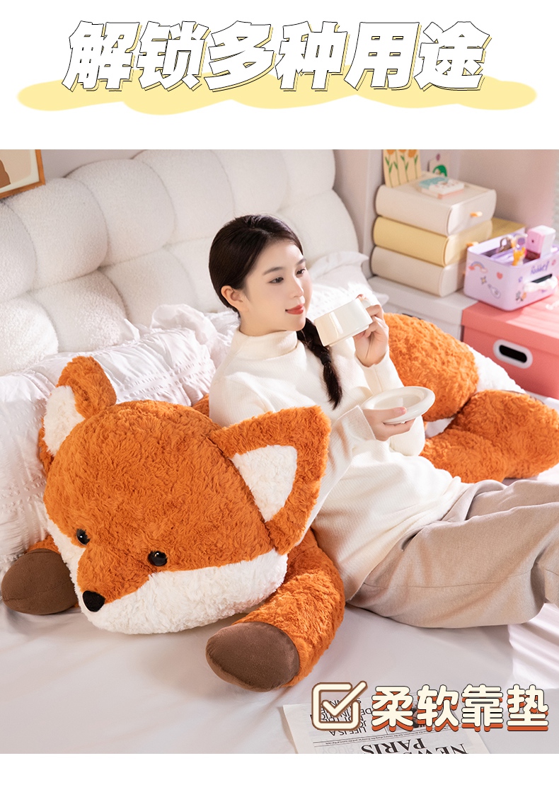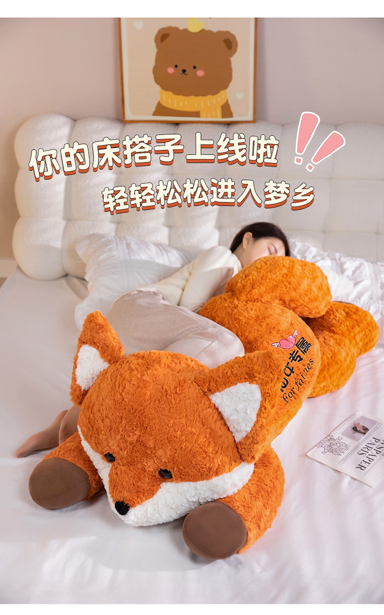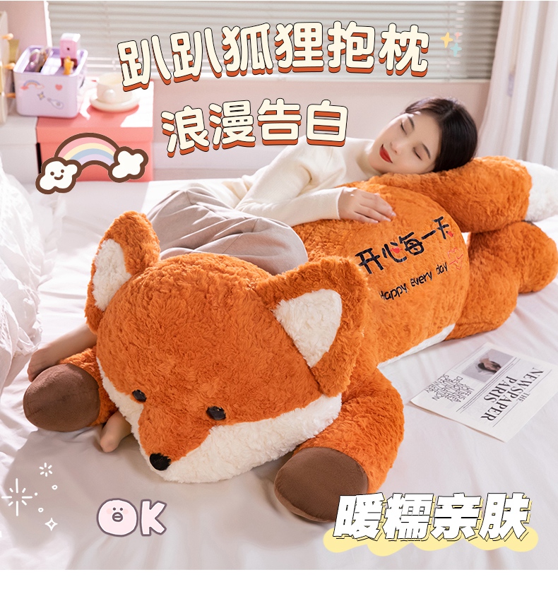卡通小狐狸抱枕公仔毛绒玩具床上睡觉夹腿长枕头靠背娃娃生日礼物