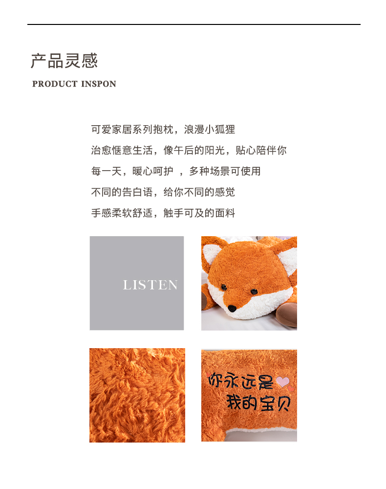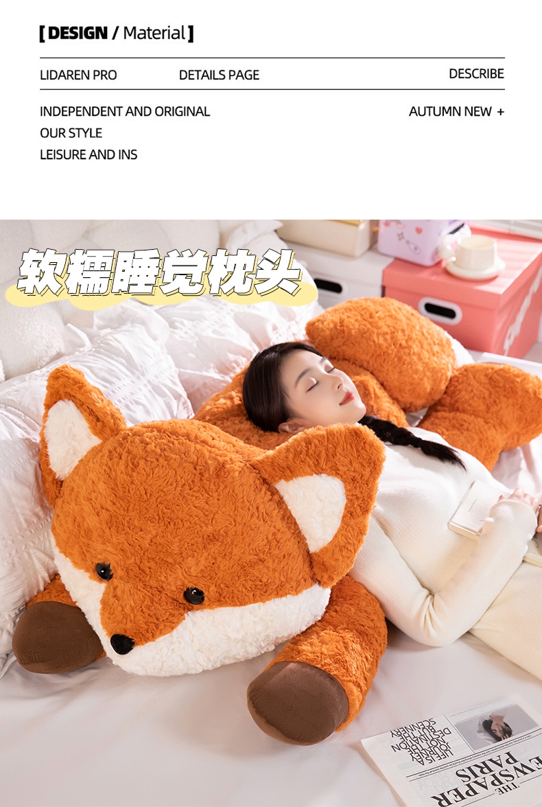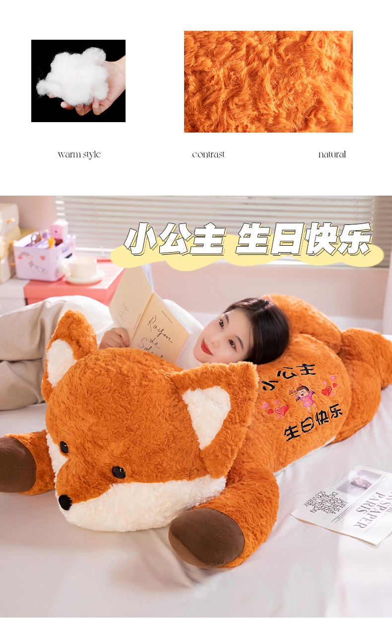 卡通小狐狸抱枕公仔毛绒玩具床上睡觉夹腿长枕头靠背娃娃生日礼物