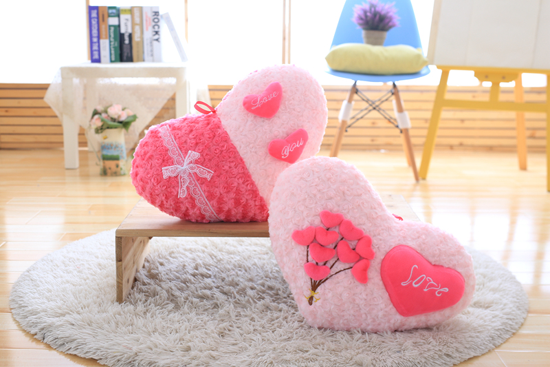 玫瑰花爱心抱枕毛绒玩具公仔心形抱枕靠枕枕头玩偶布娃娃婚庆礼物
