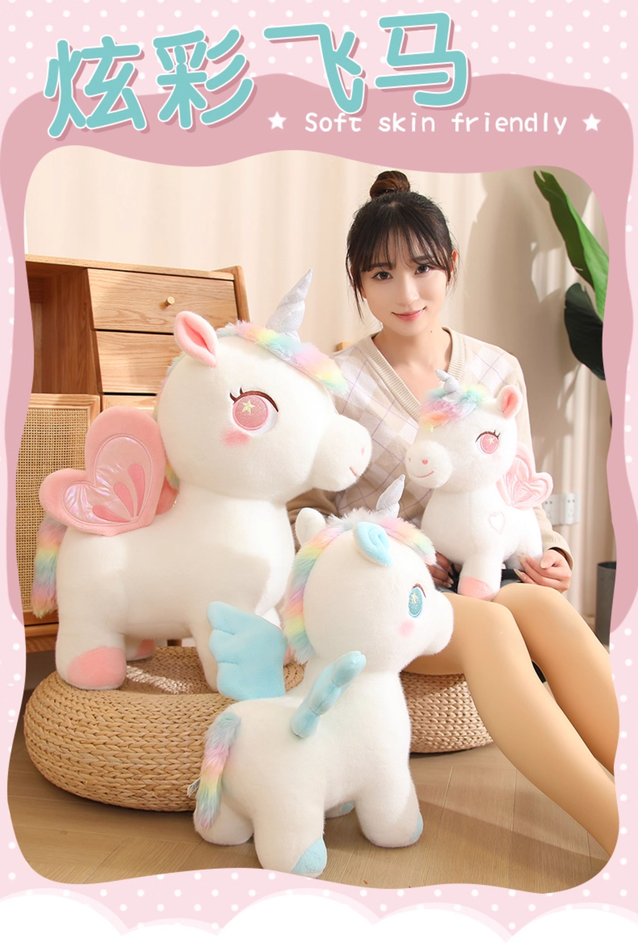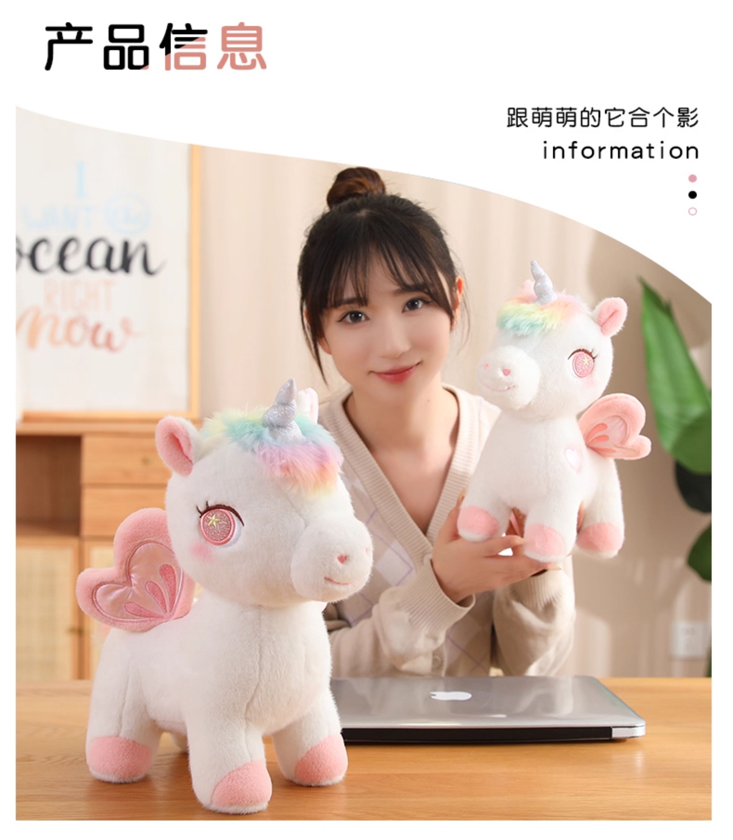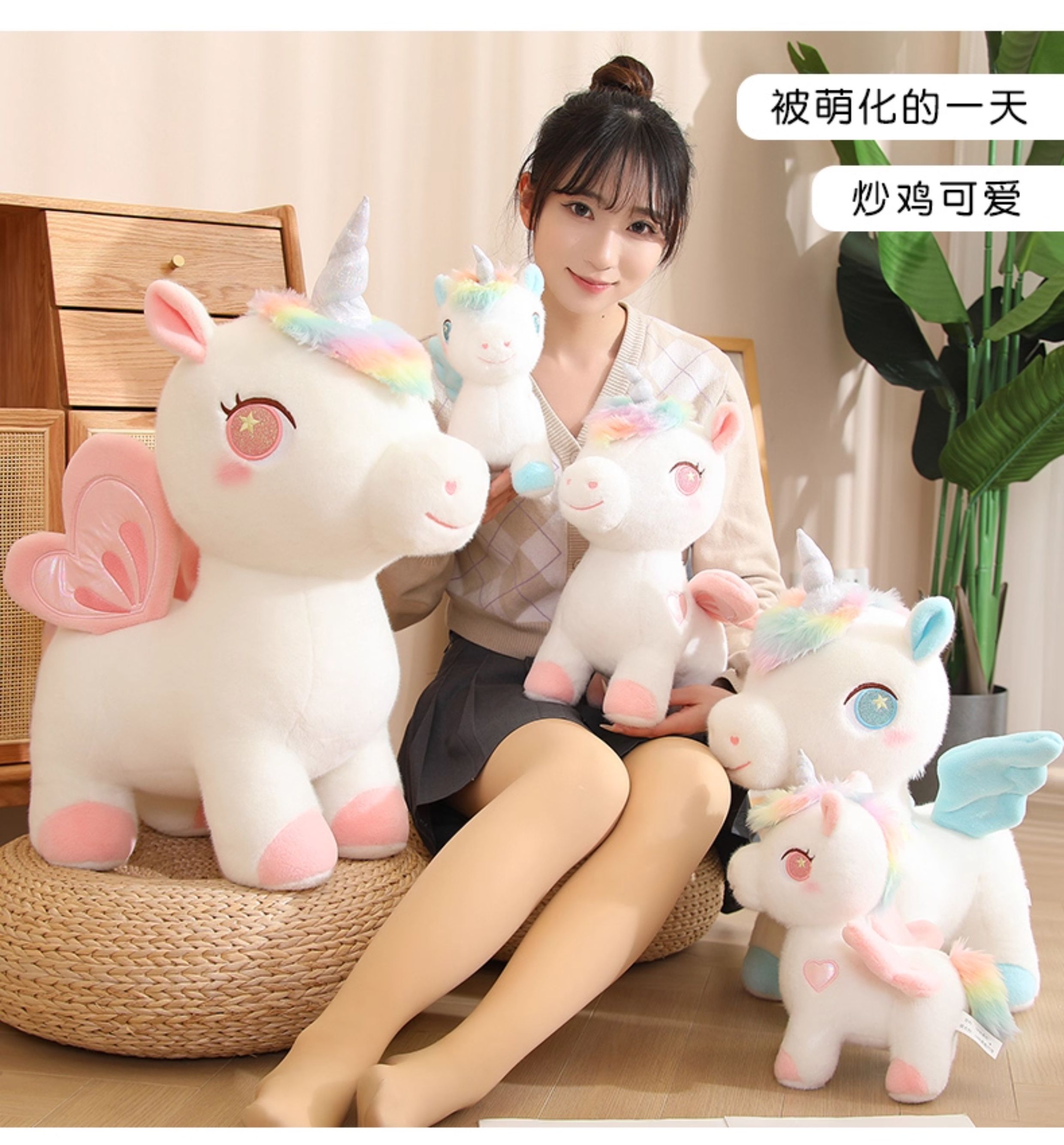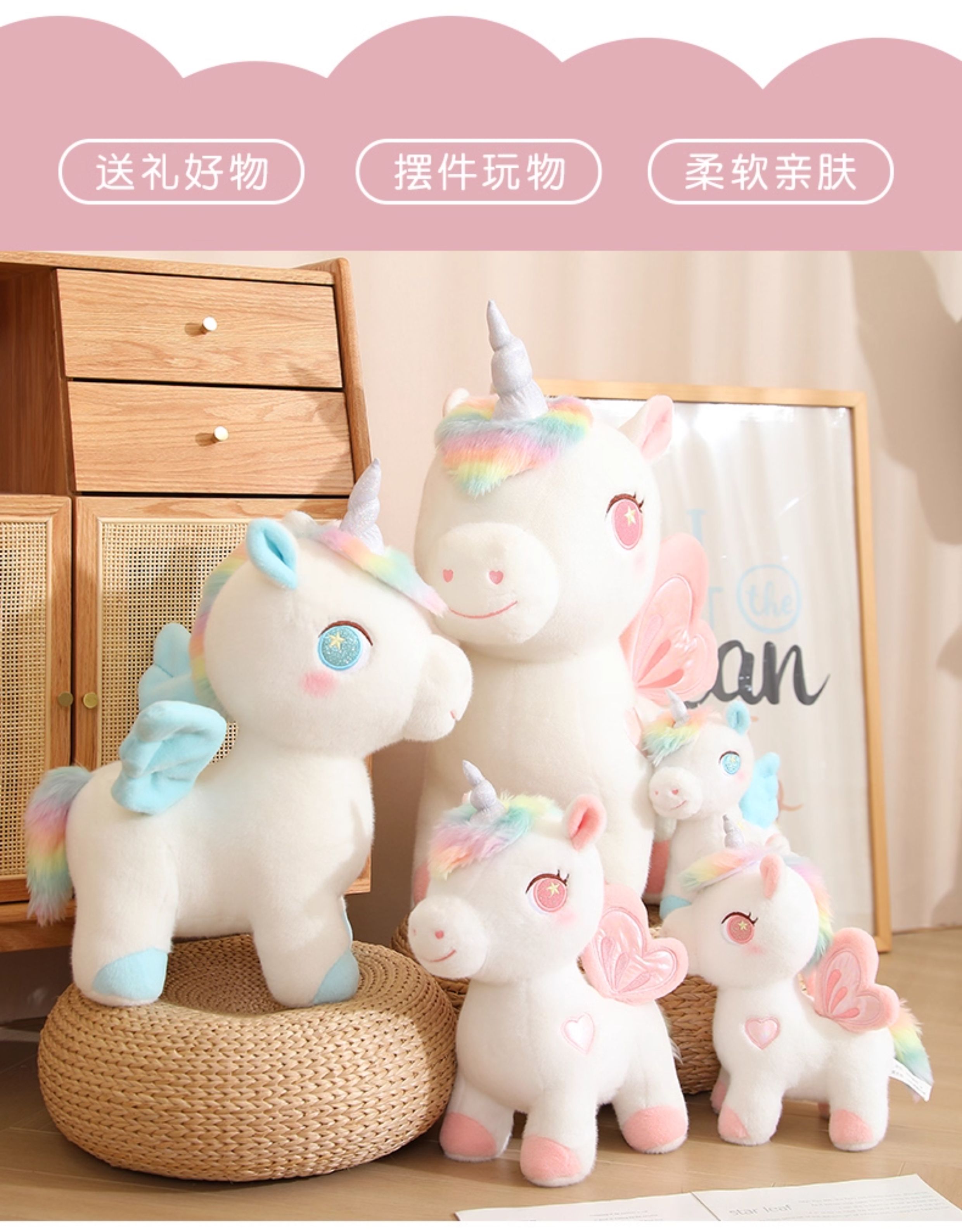 可爱独角兽公仔彩虹小白马毛绒玩具女孩生日礼物抱睡觉玩偶布娃娃