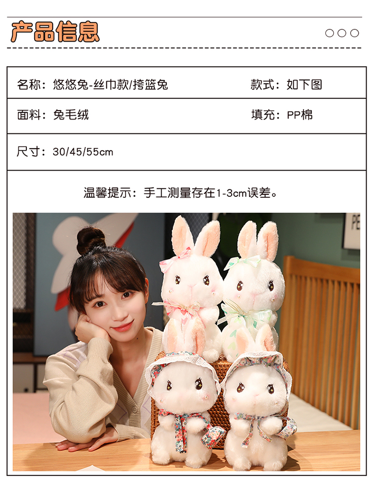 花篮可爱小兔子毛绒玩具兔年吉祥物布娃娃玩偶生日礼物公仔送女