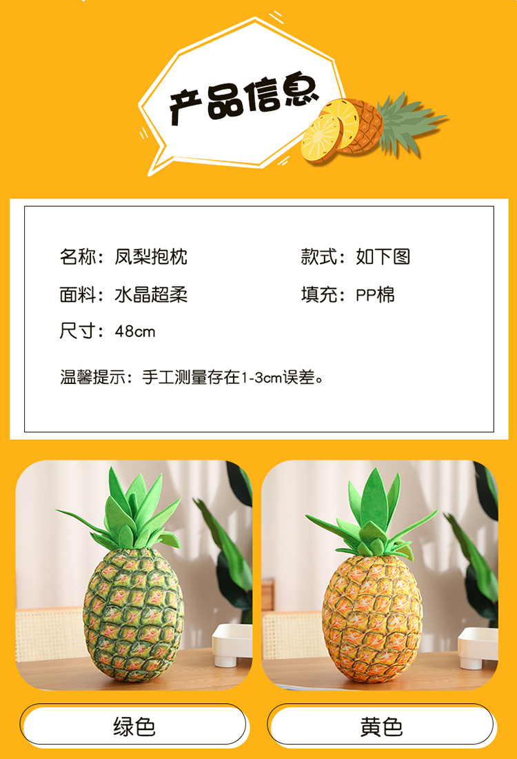 仿真凤梨毛绒玩具水果菠萝布娃娃儿童生日礼物玩偶公仔抱枕送女生