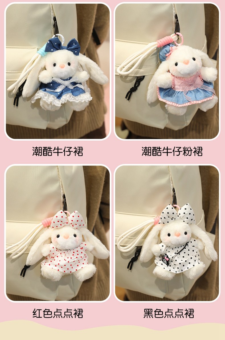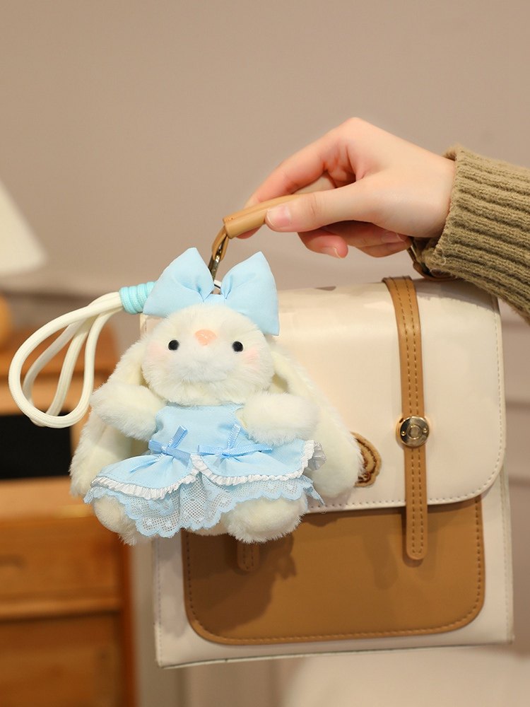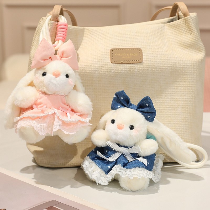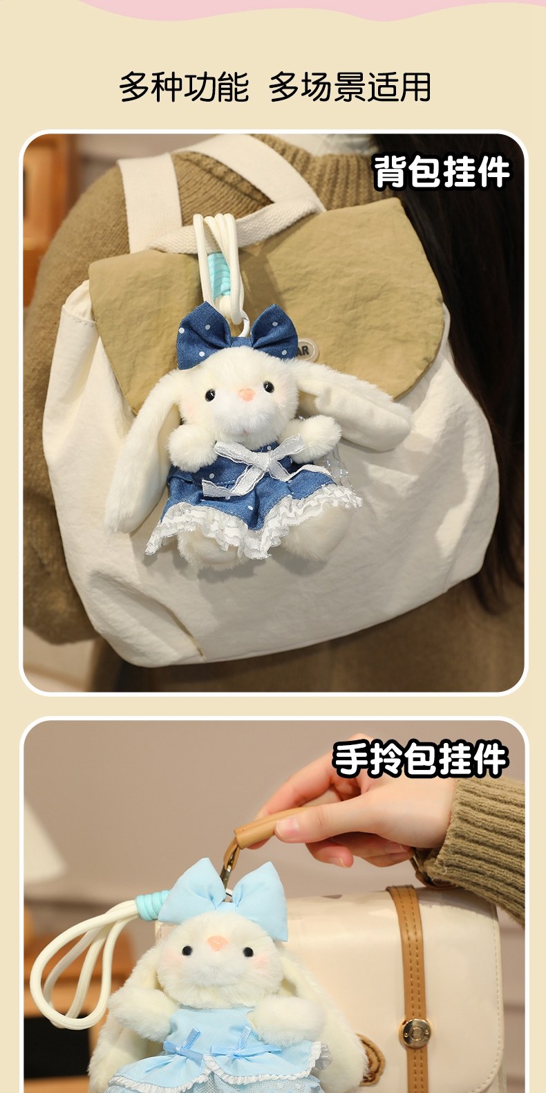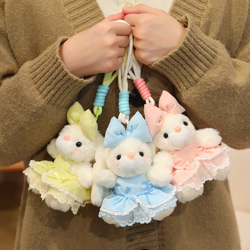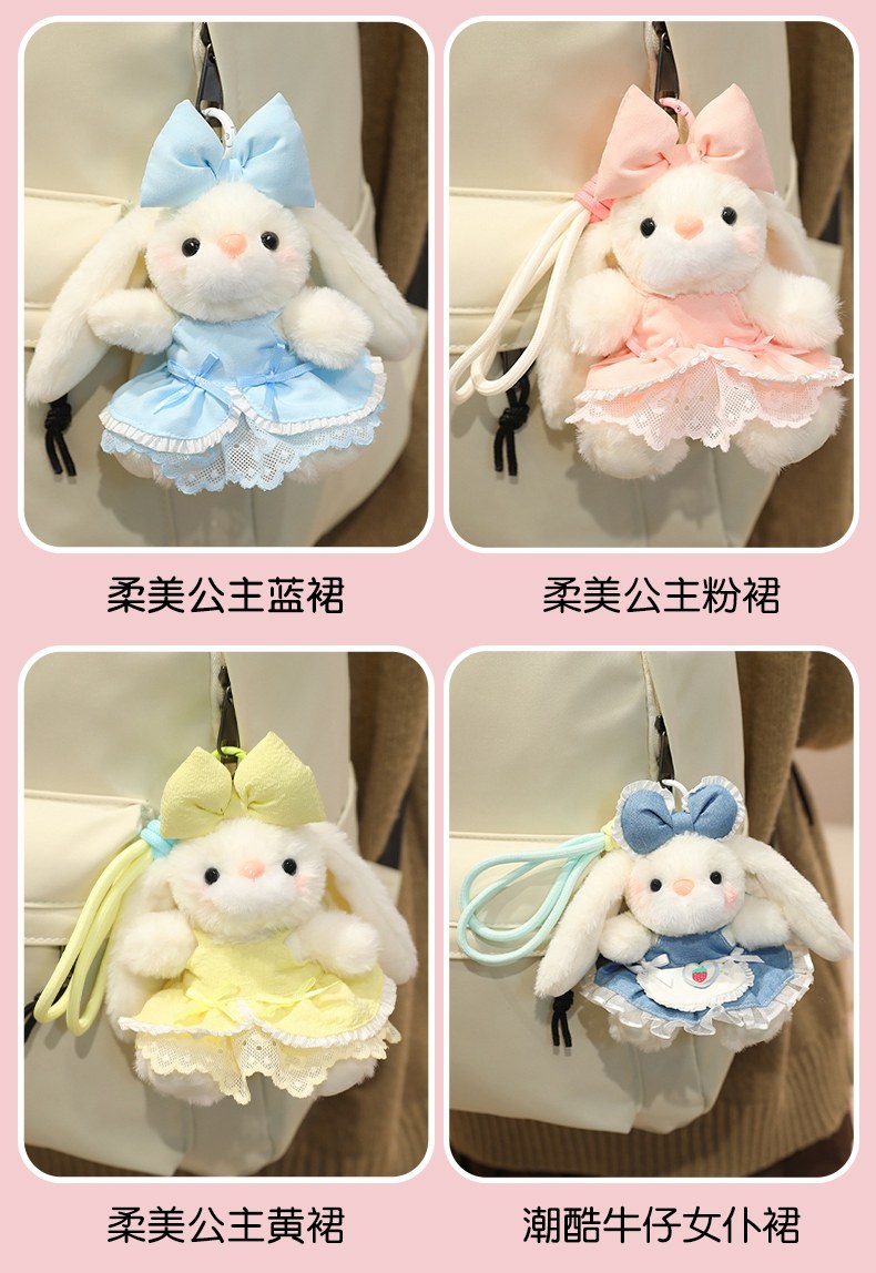 甜美公主裙垂耳兔毛绒挂件蝴蝶结蕾丝裙包包挂饰钥匙扣礼物