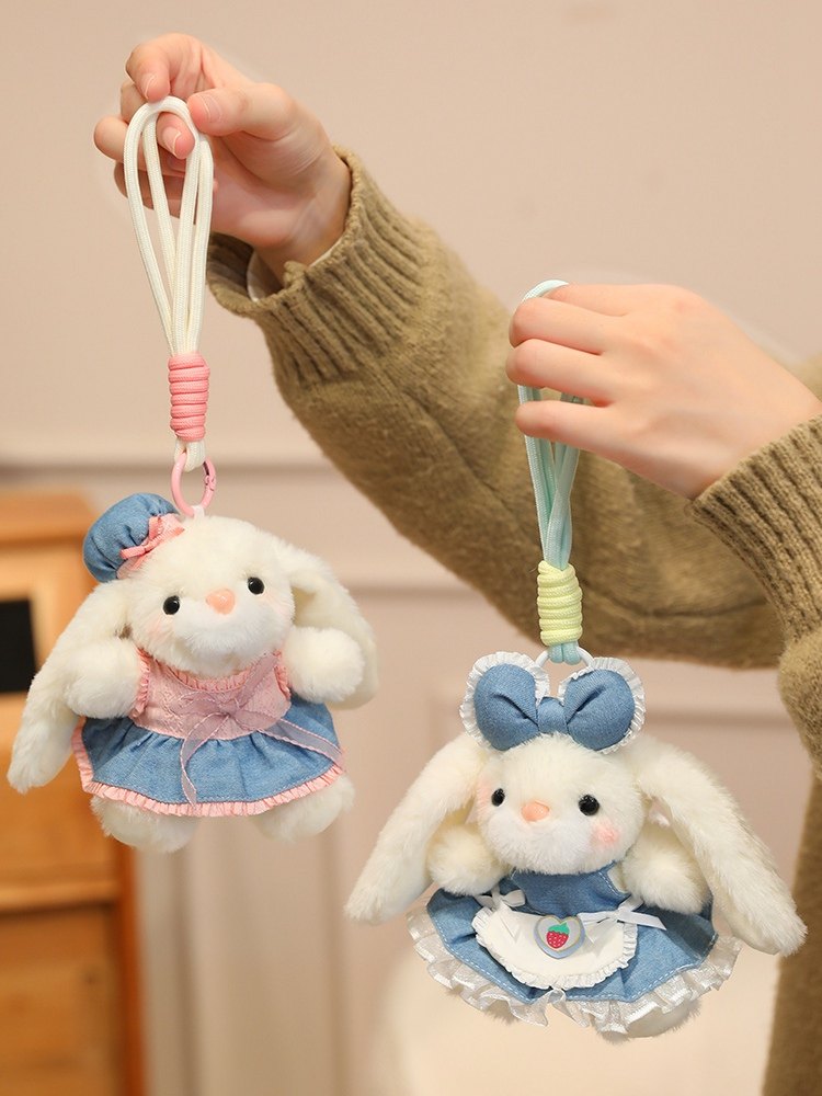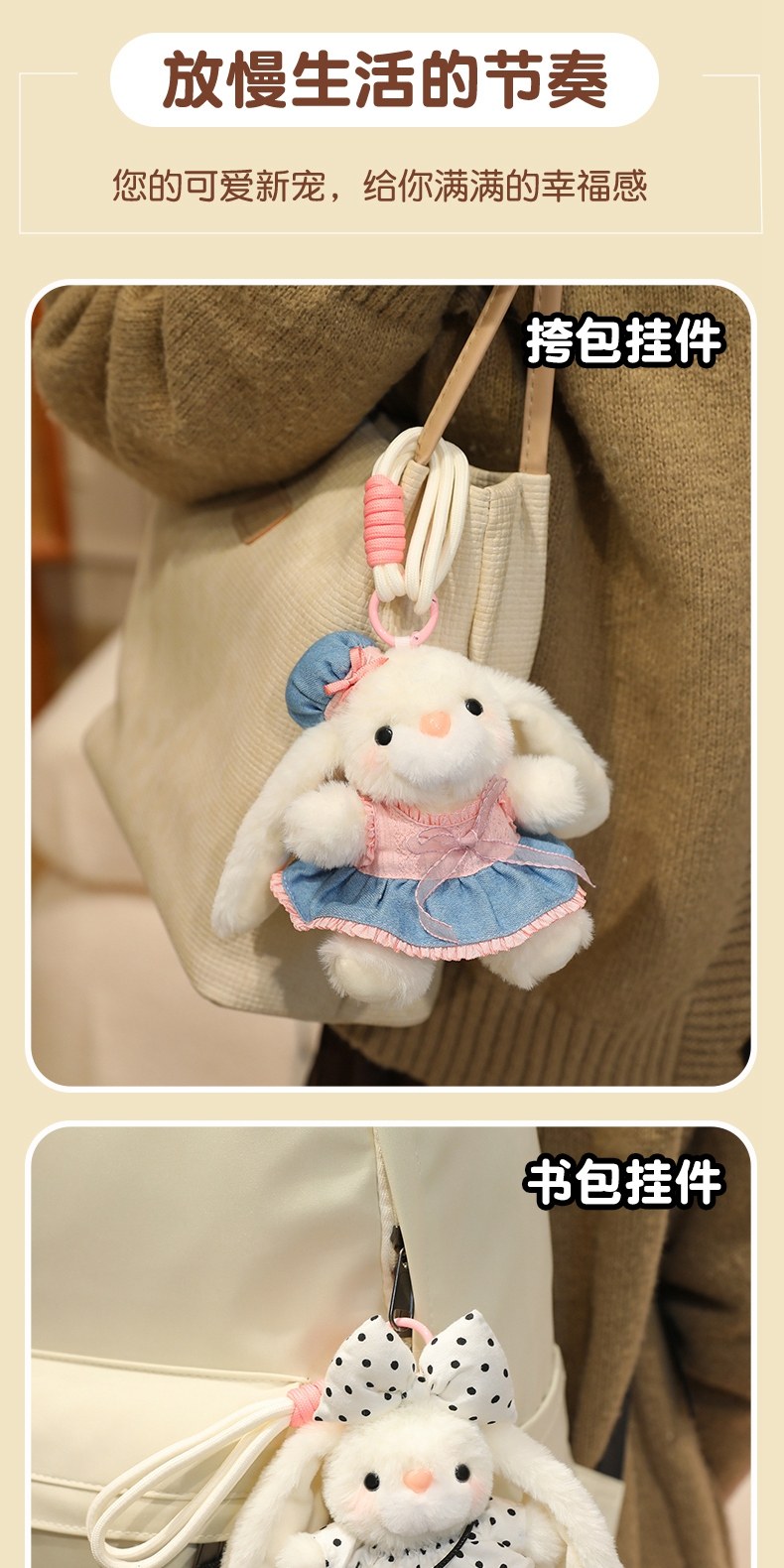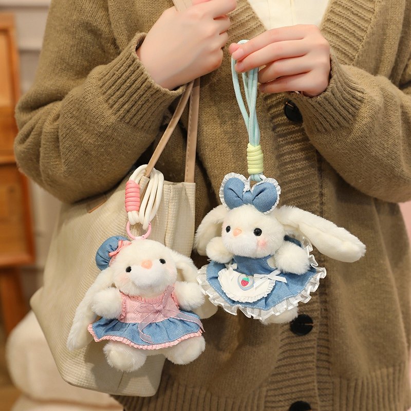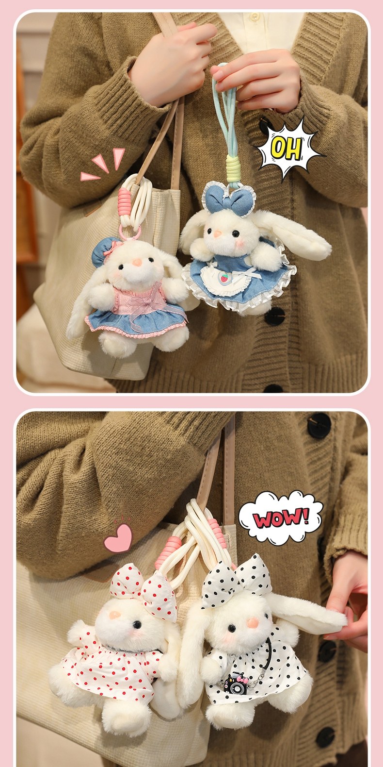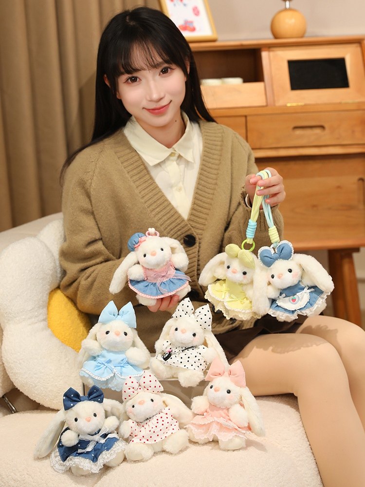 甜美公主裙垂耳兔毛绒挂件蝴蝶结蕾丝裙包包挂饰钥匙扣礼物