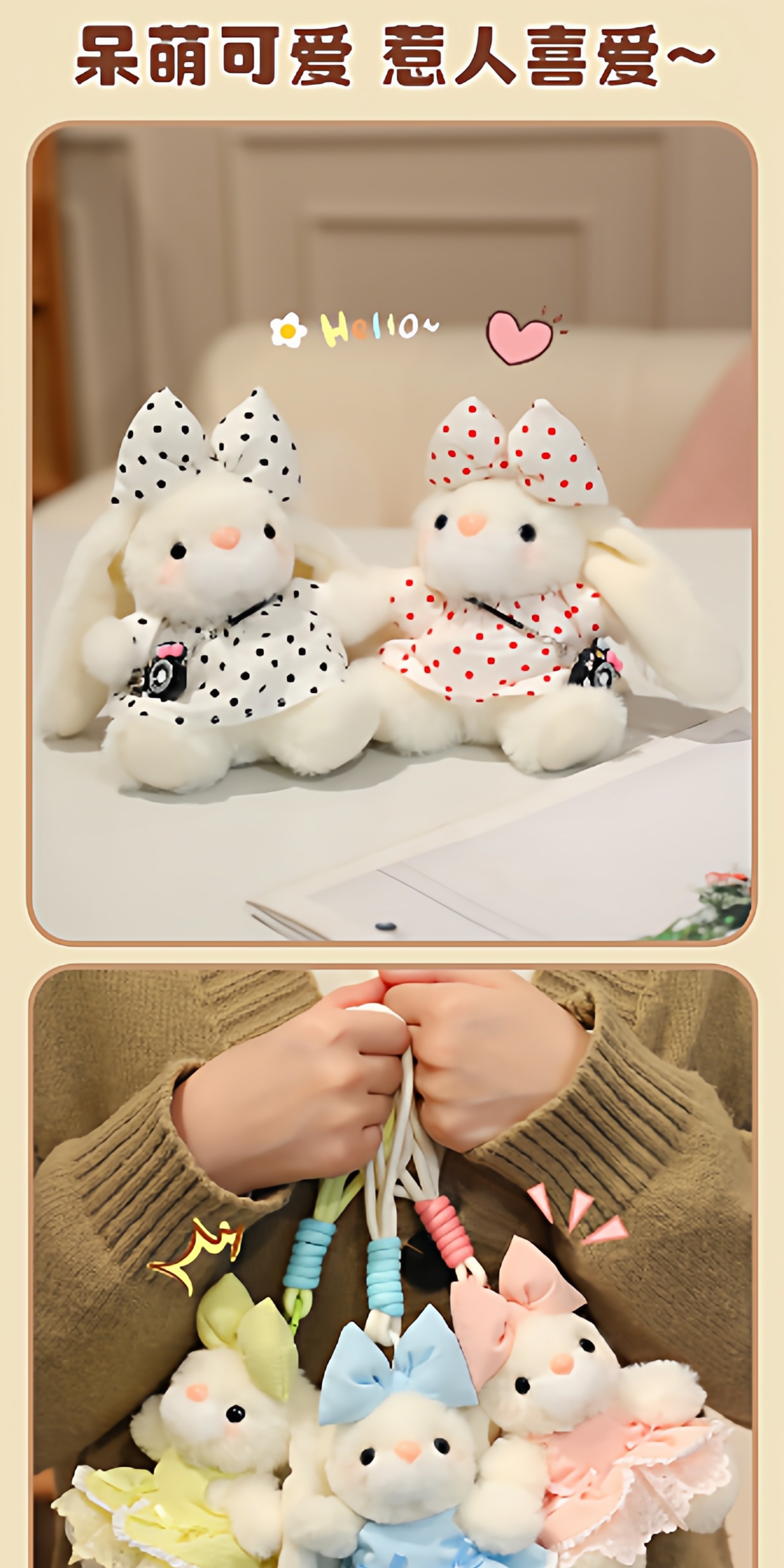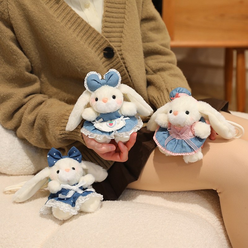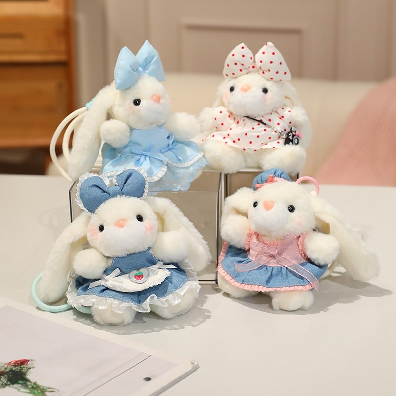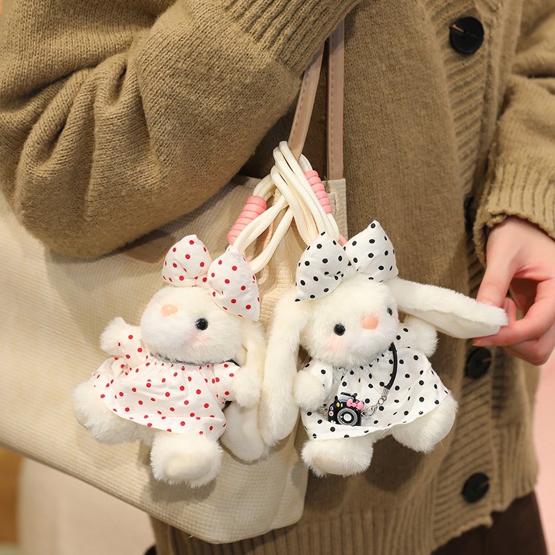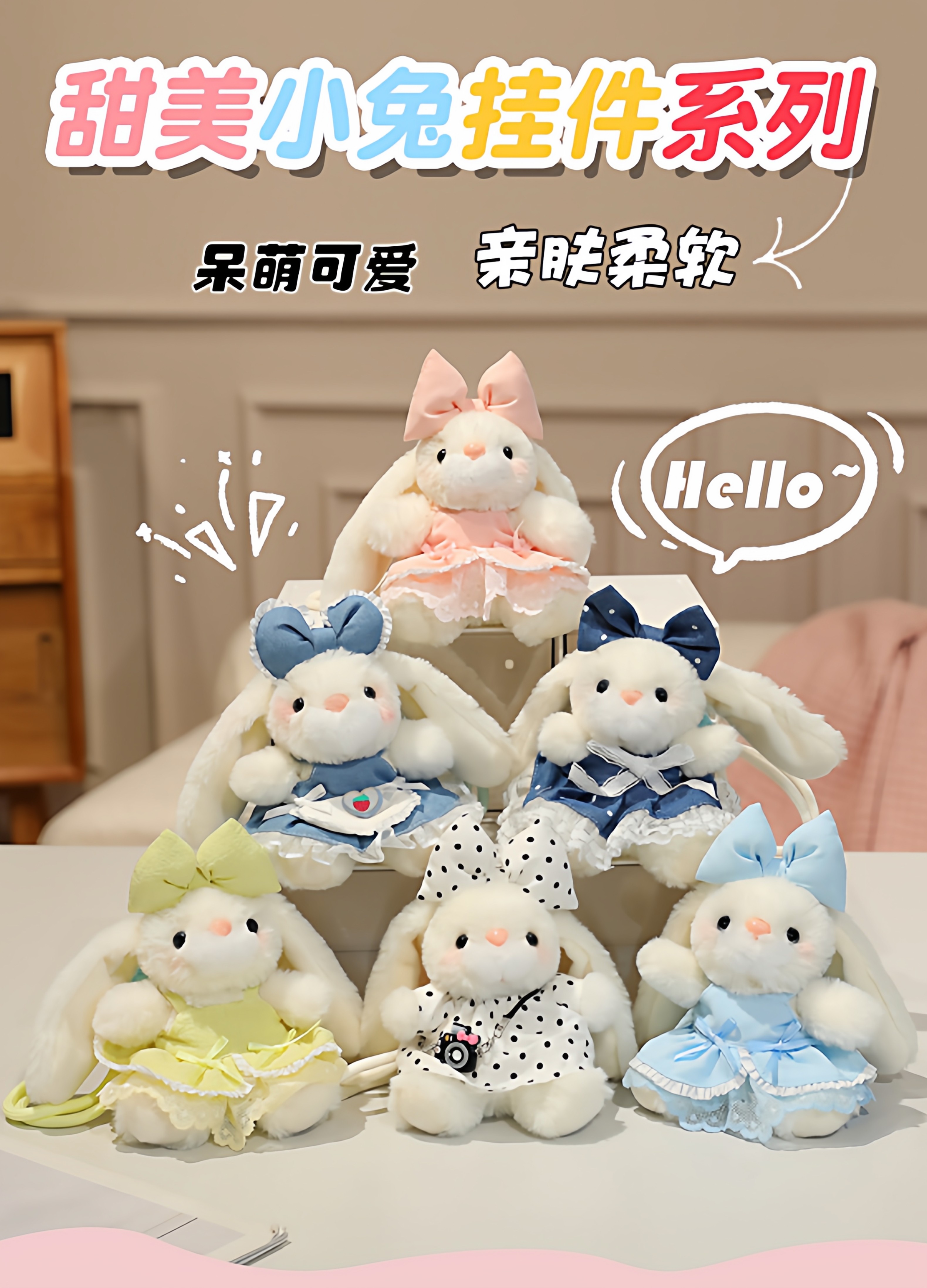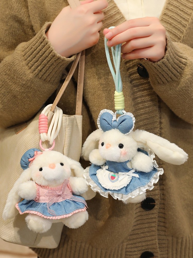 甜美公主裙垂耳兔毛绒挂件蝴蝶结蕾丝裙包包挂饰钥匙扣礼物
