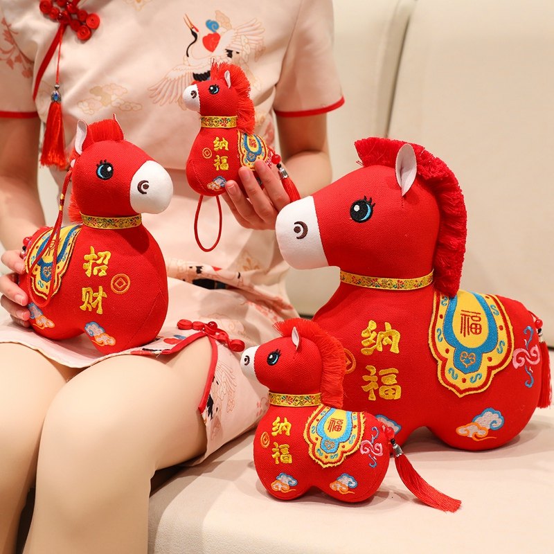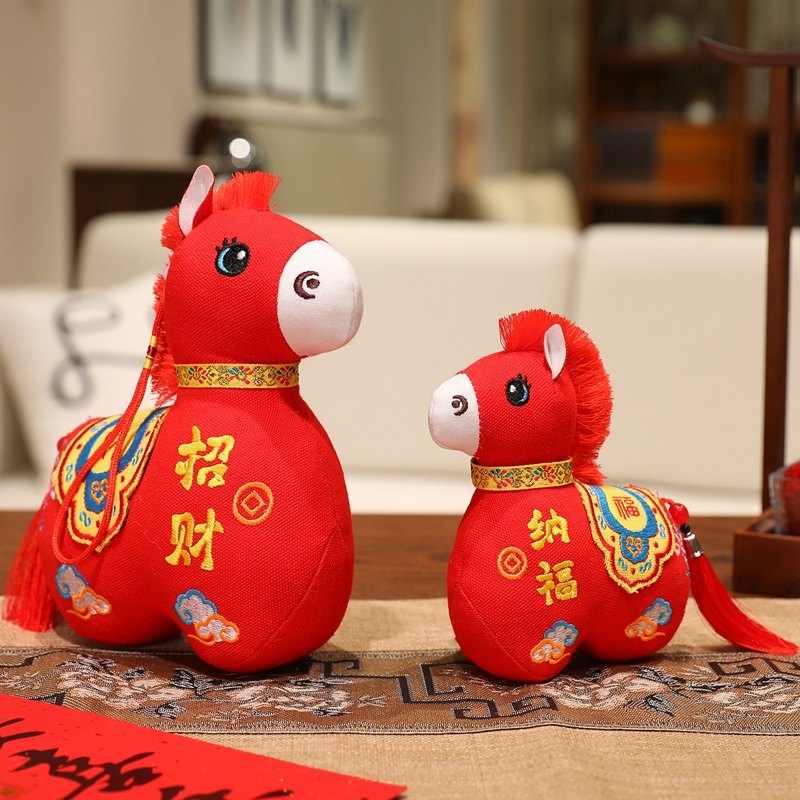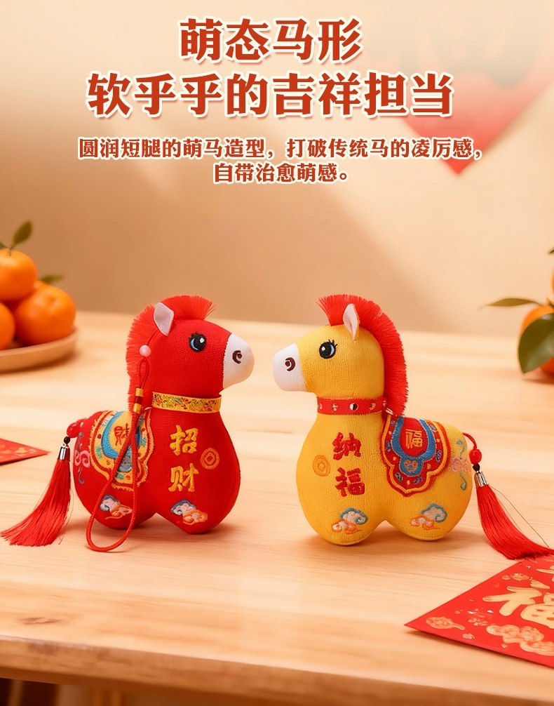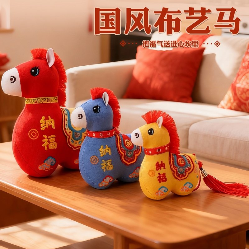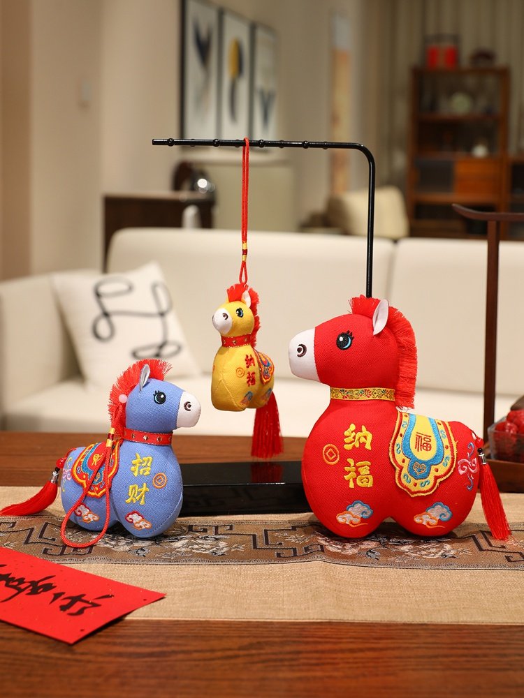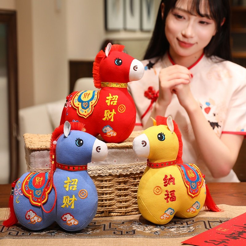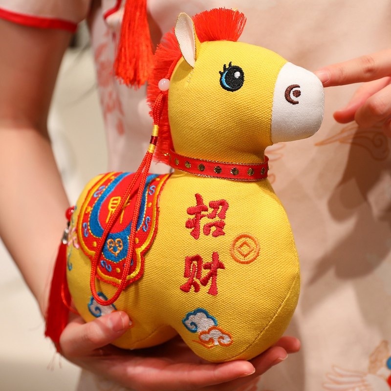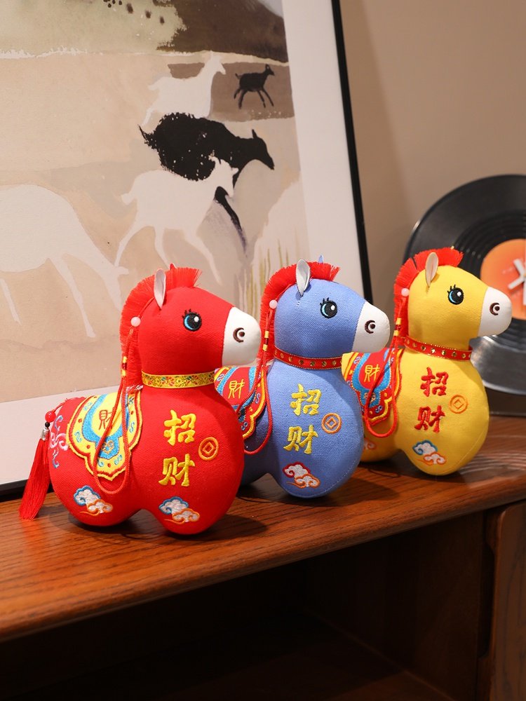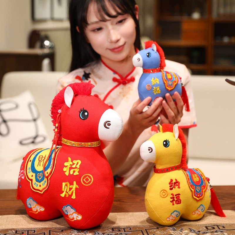 国风布艺马生肖公仔吉祥物传统纹样立体造型毛绒玩具年货礼品