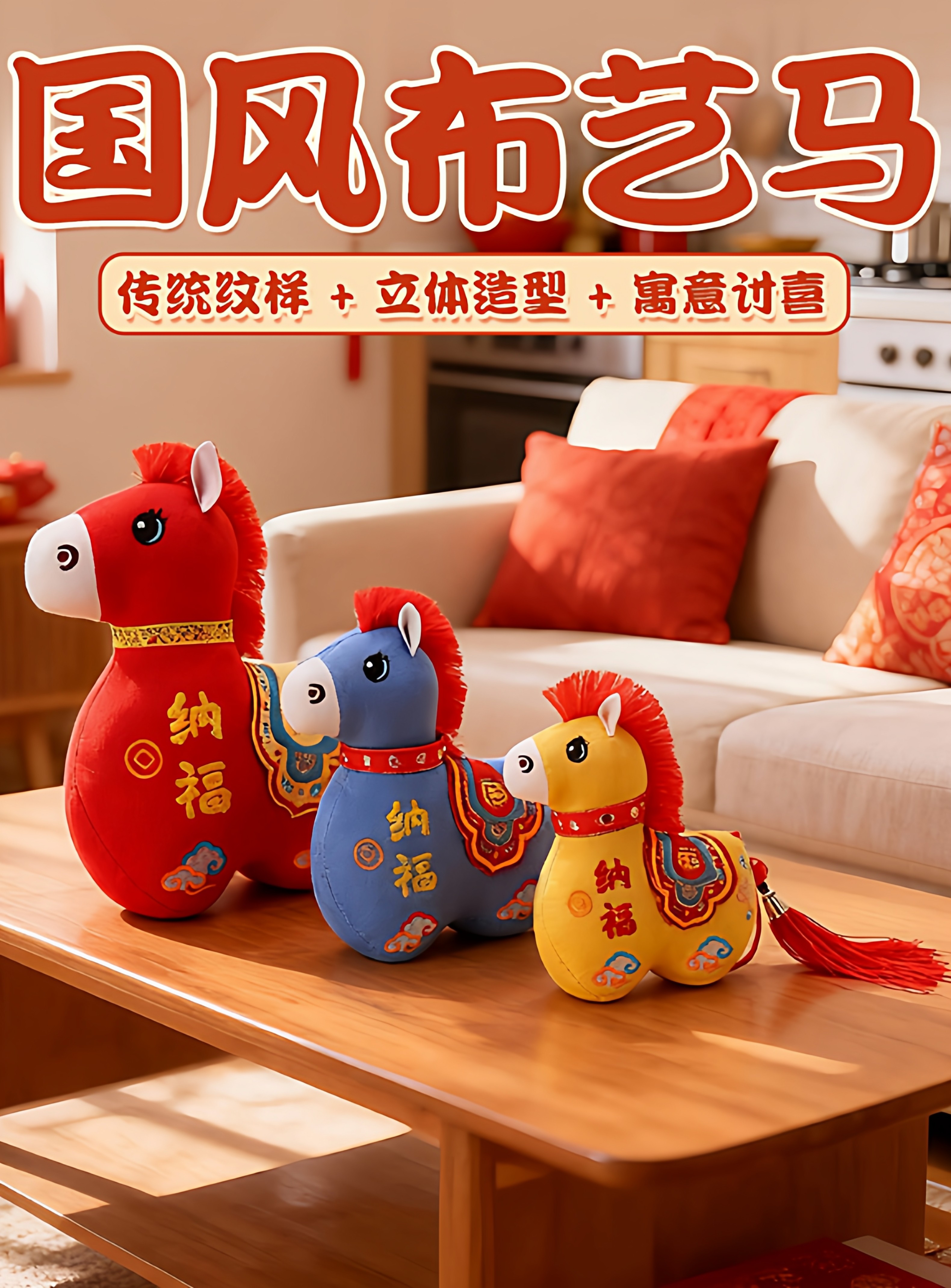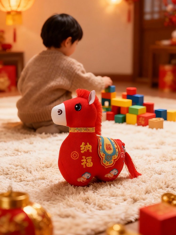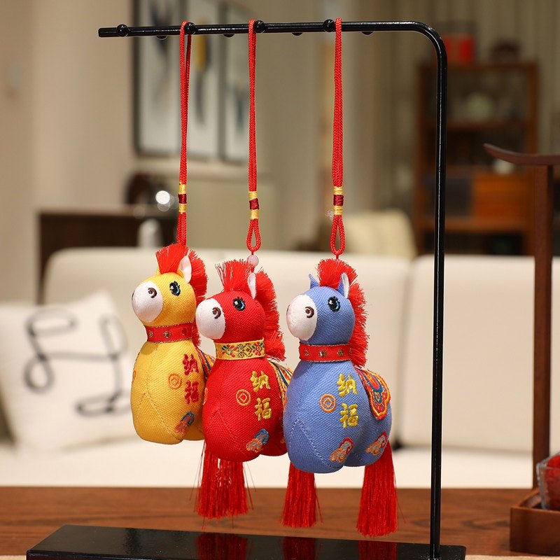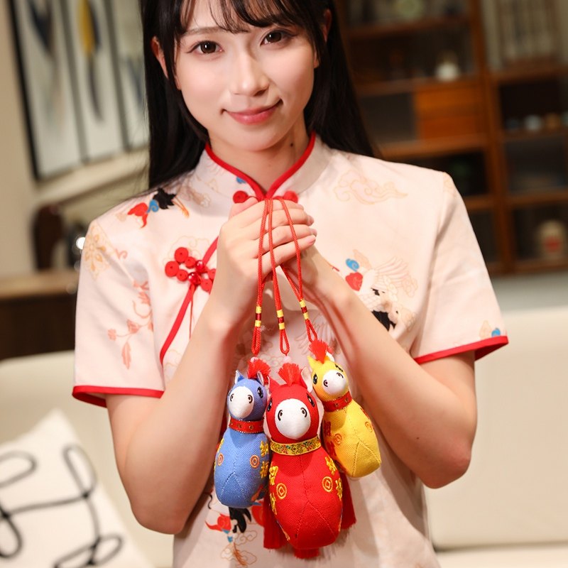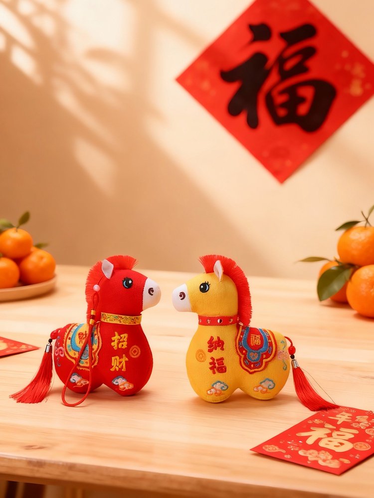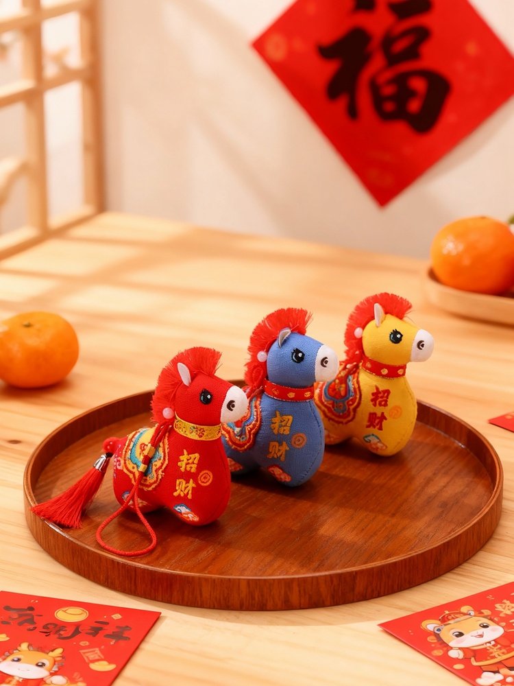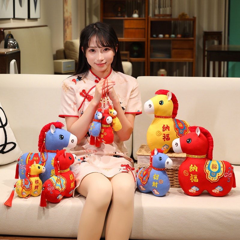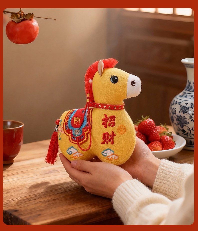 国风布艺马生肖公仔吉祥物传统纹样立体造型毛绒玩具年货礼品