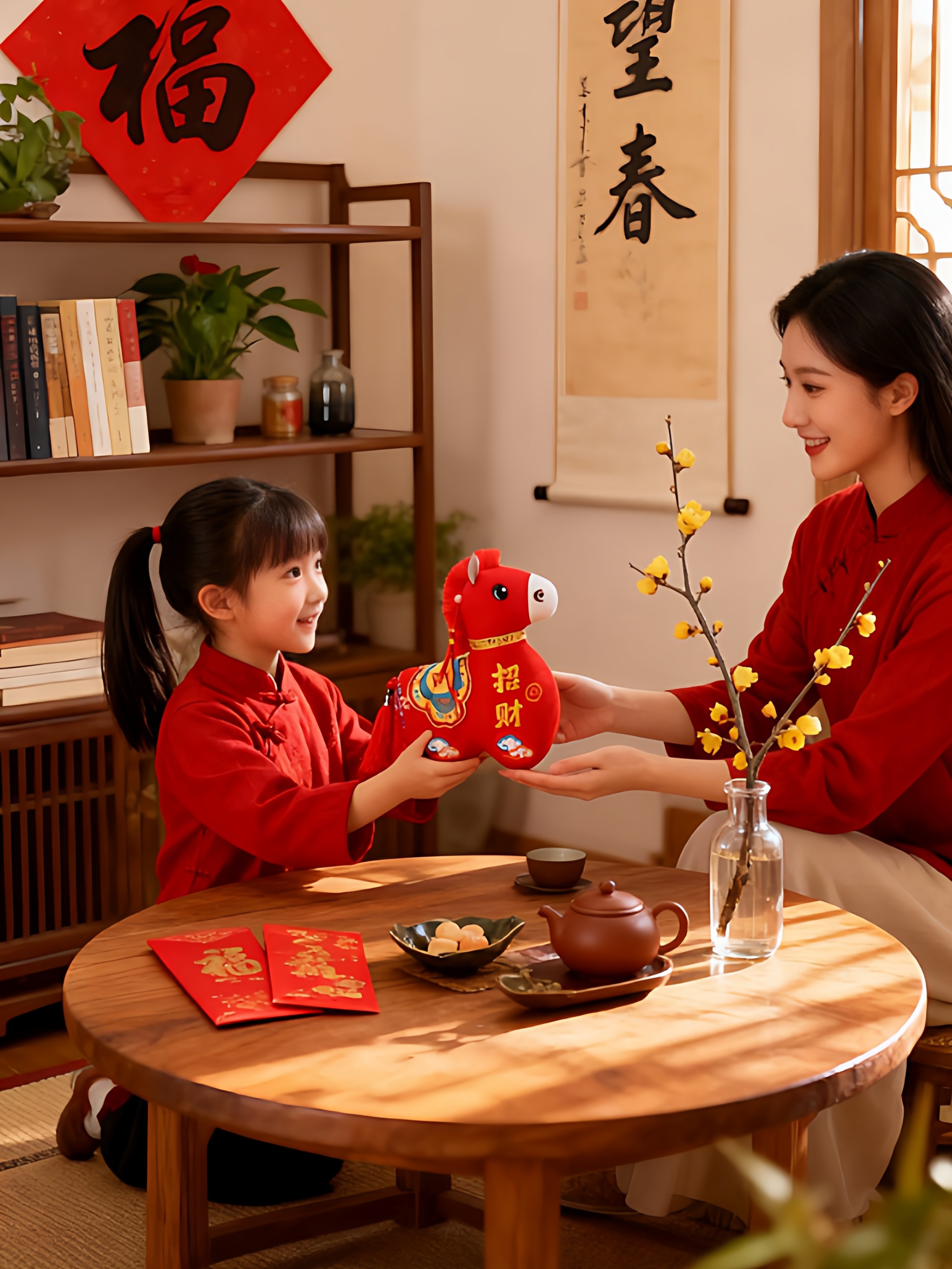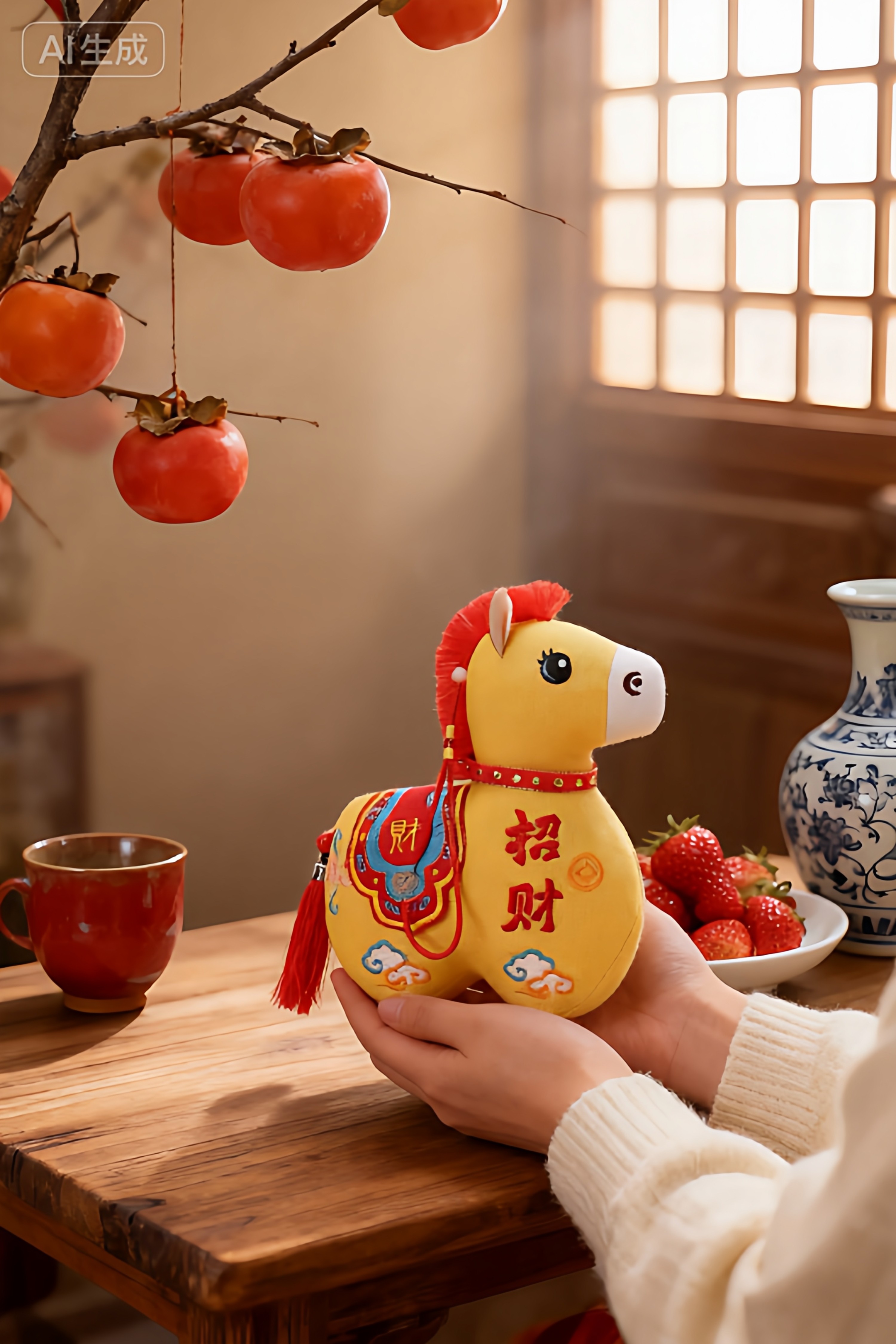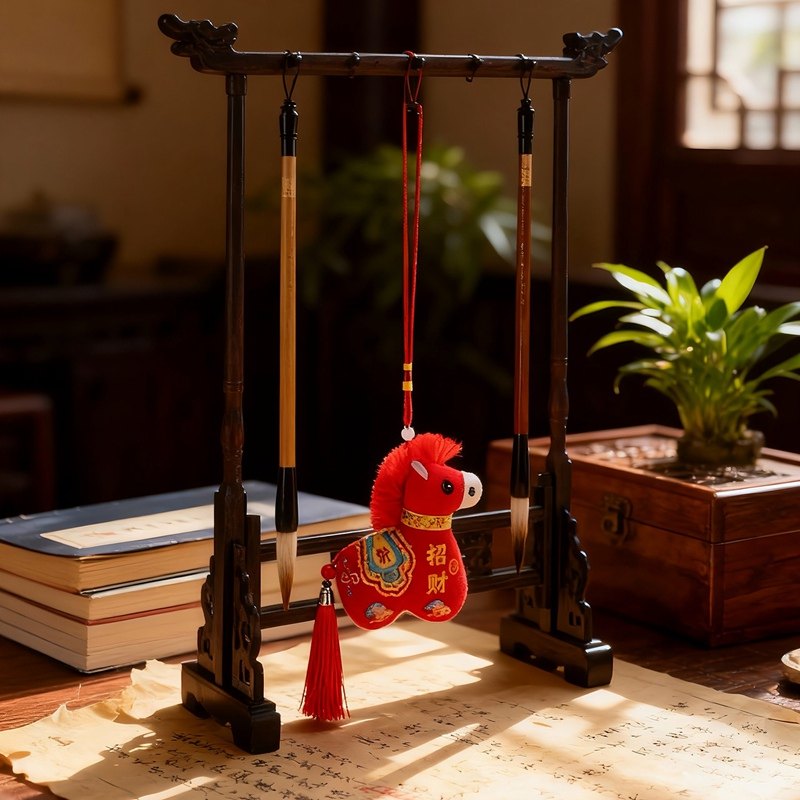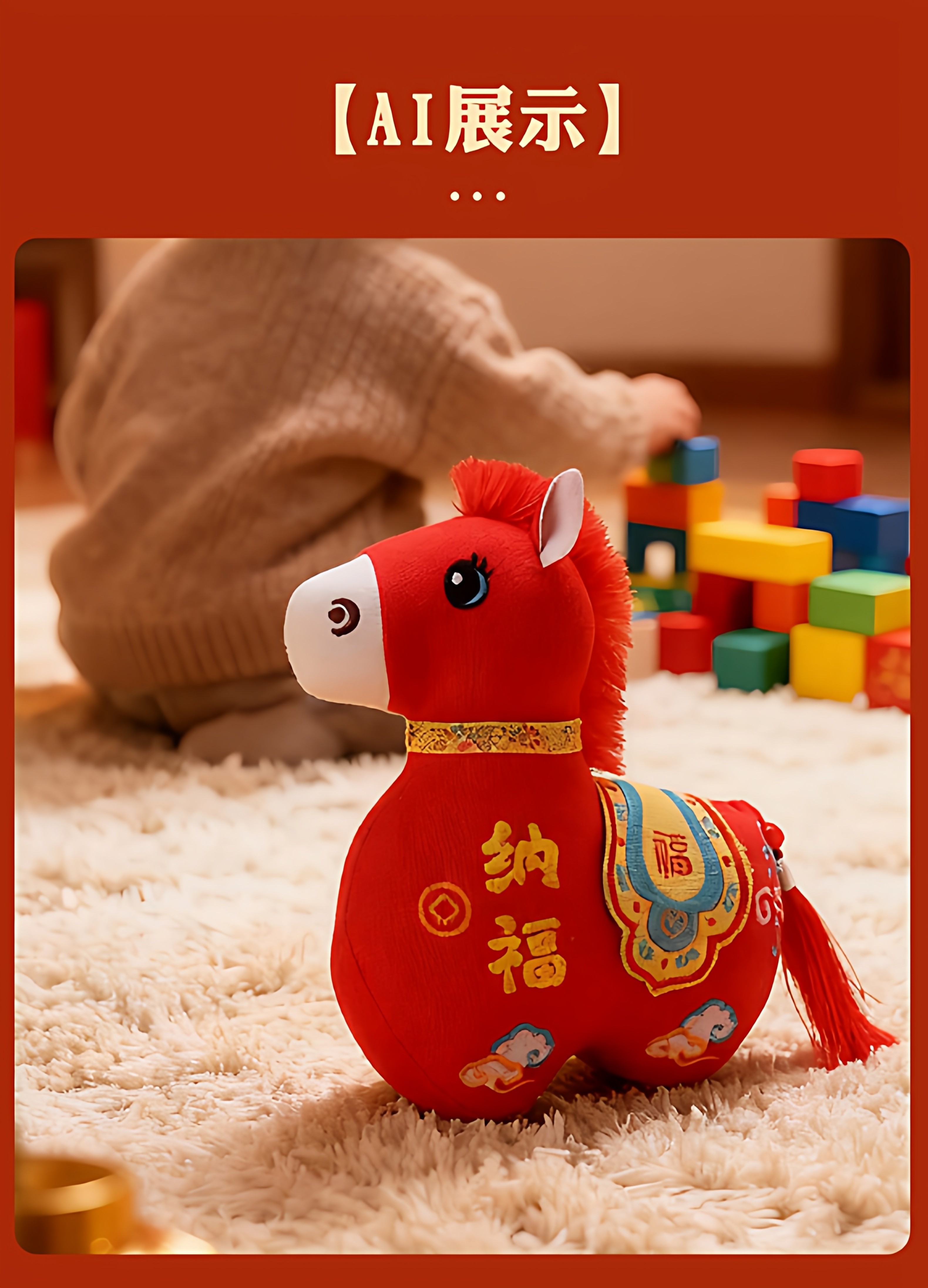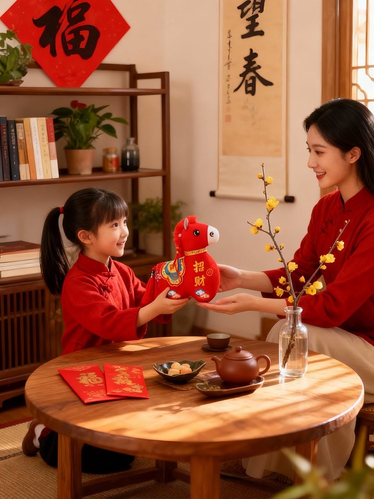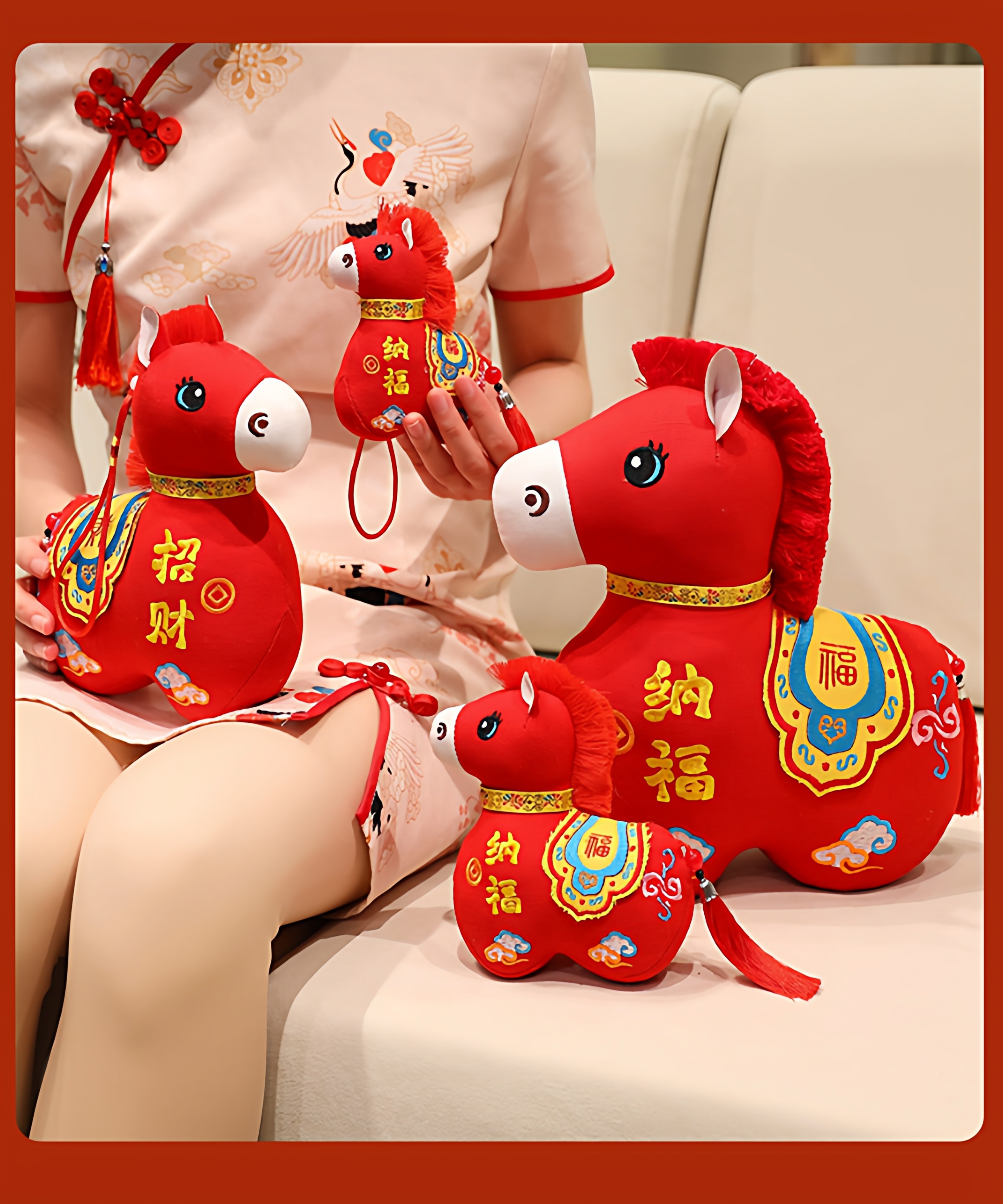 国风布艺马生肖公仔吉祥物传统纹样立体造型毛绒玩具年货礼品