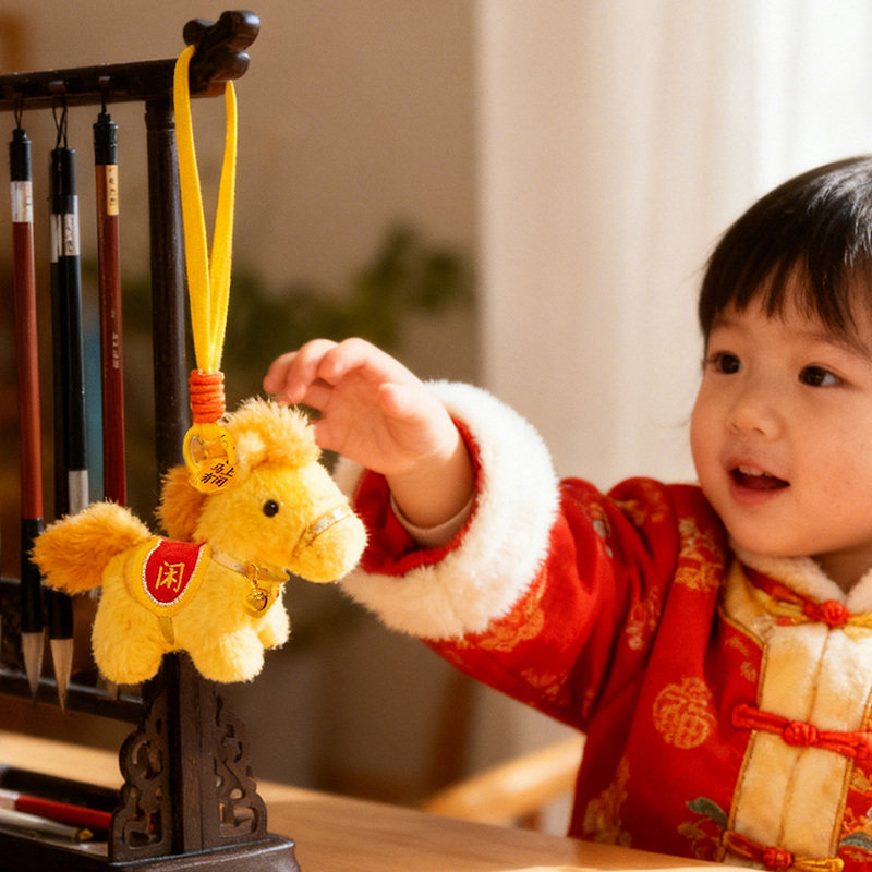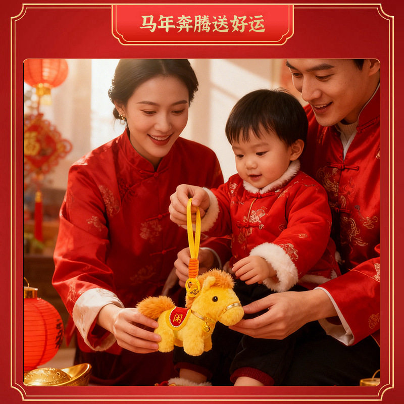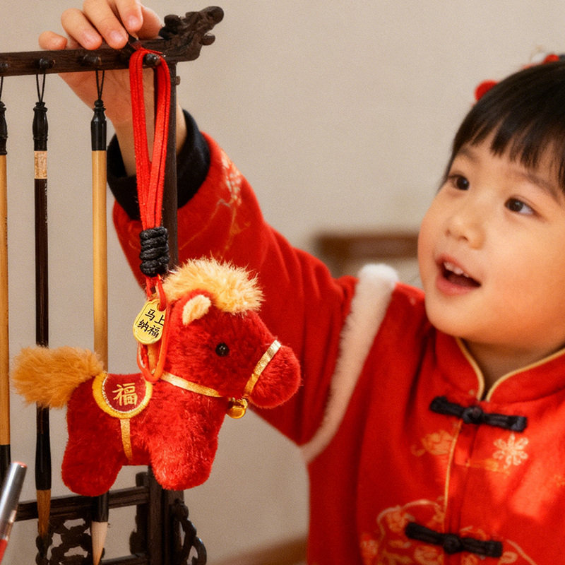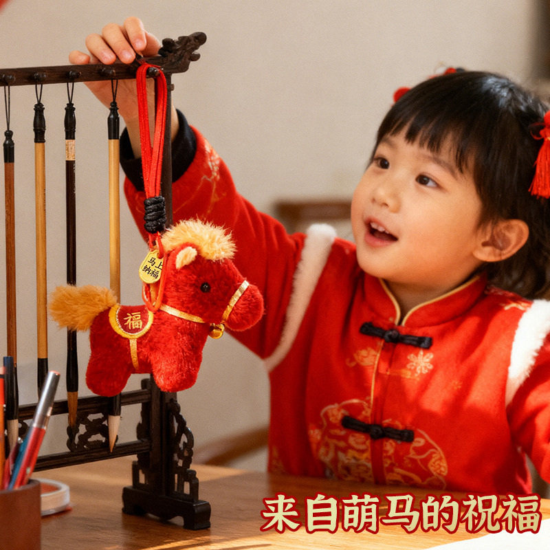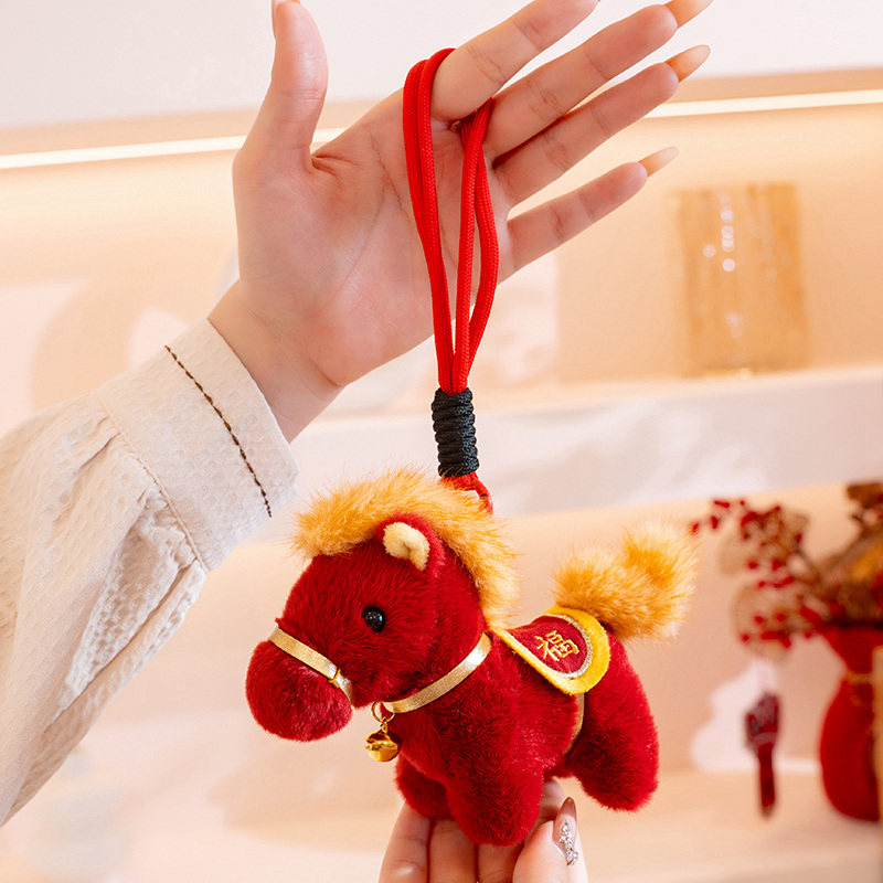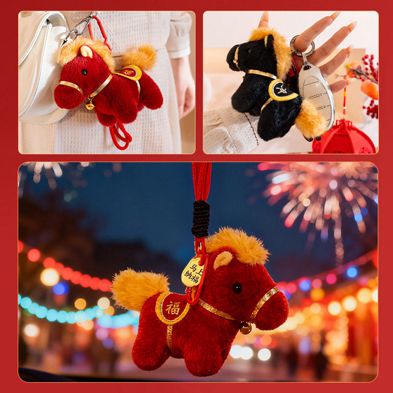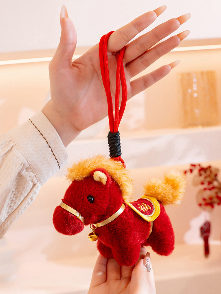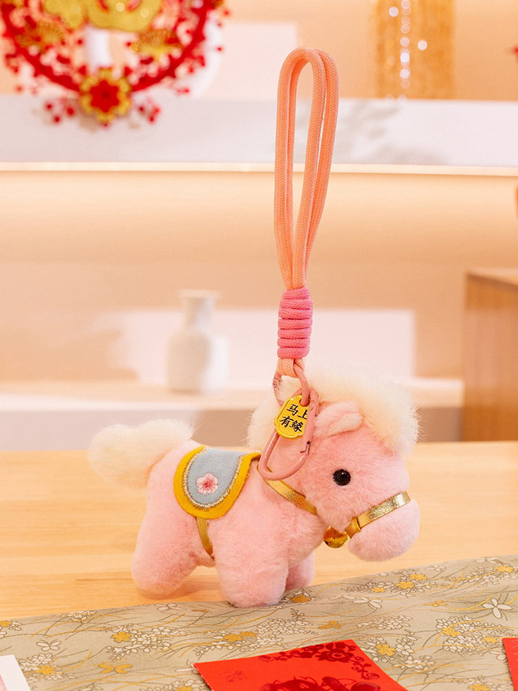 可爱小马毛绒玩具马上有钱钥匙扣挂件卡通马年礼品精致
