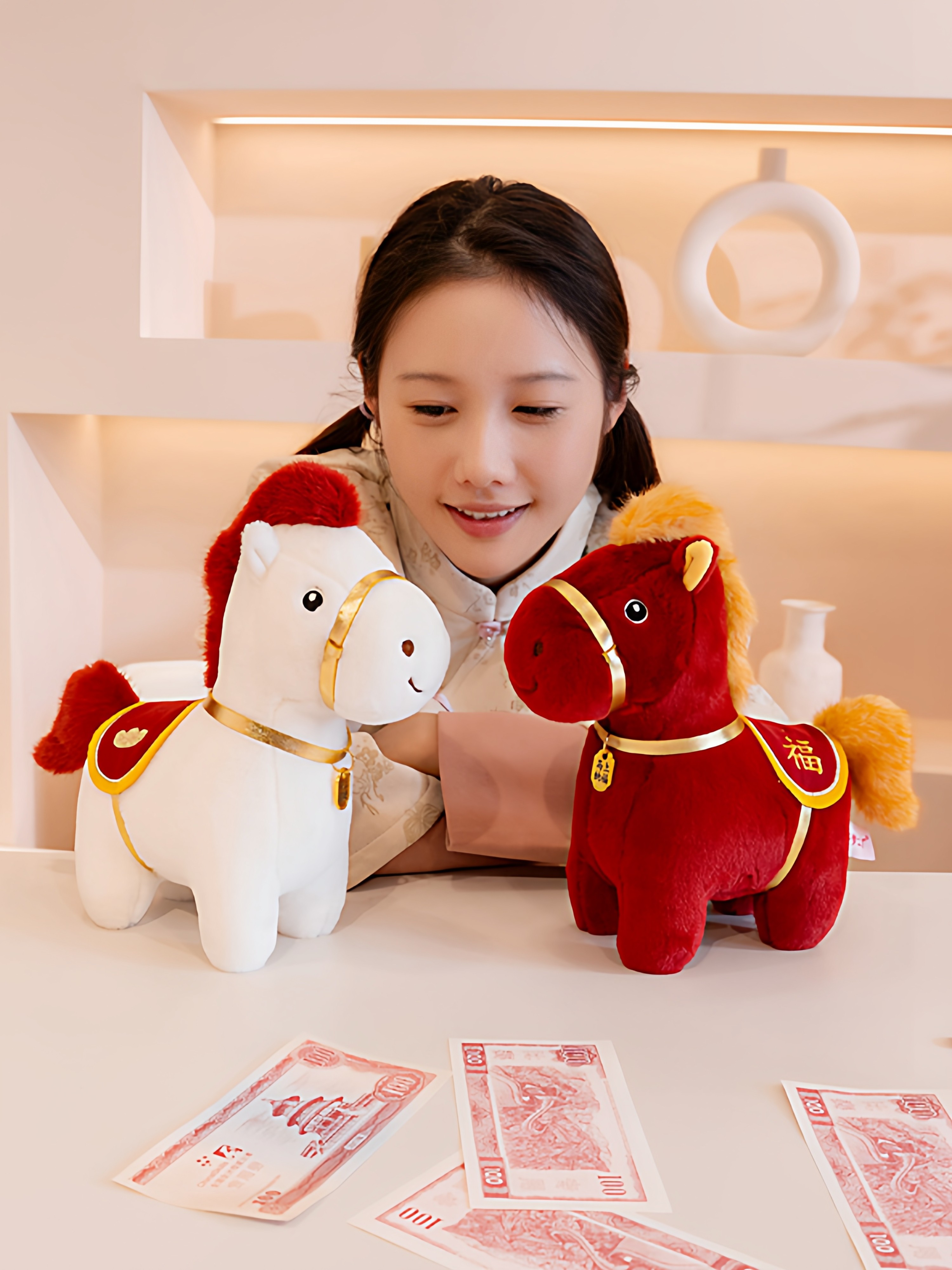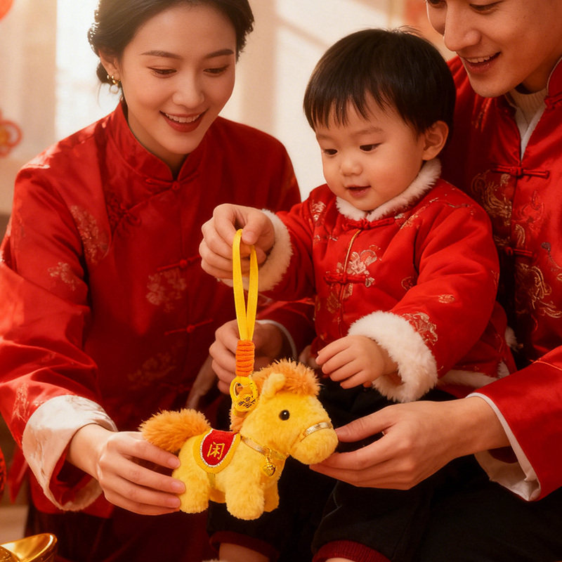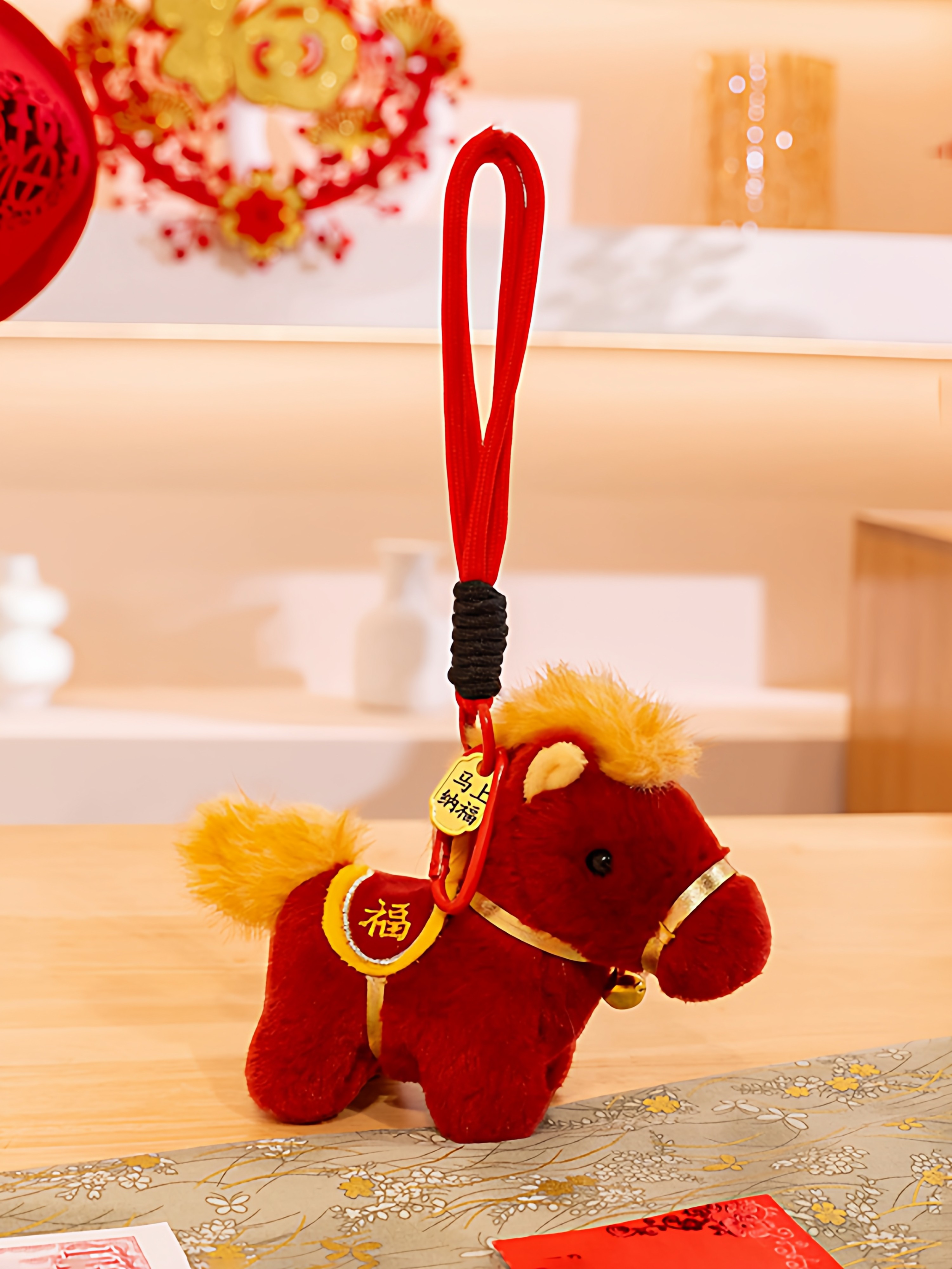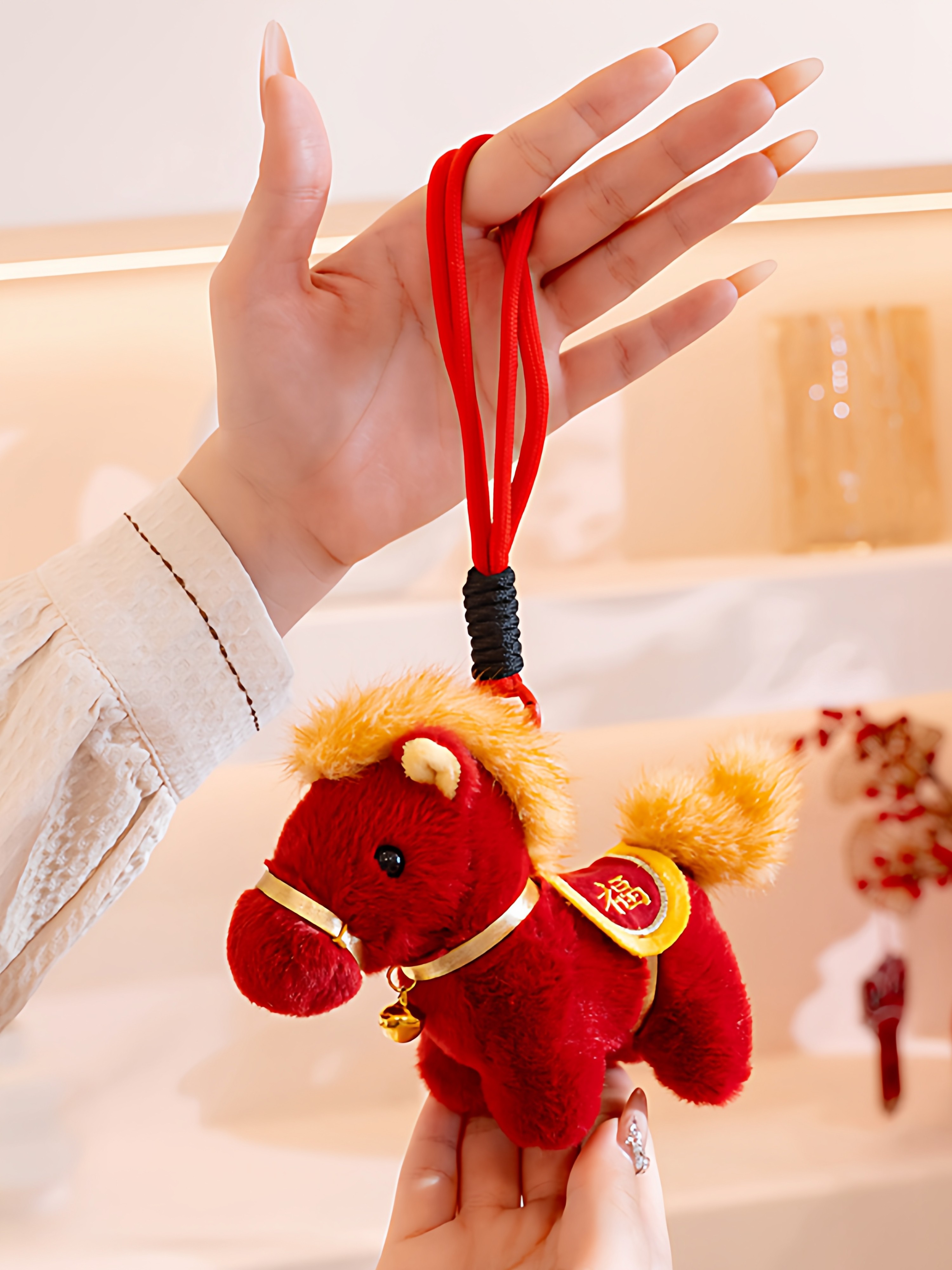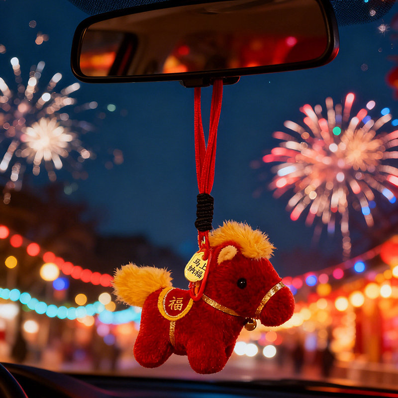 可爱小马毛绒玩具马上有钱钥匙扣挂件卡通马年礼品精致